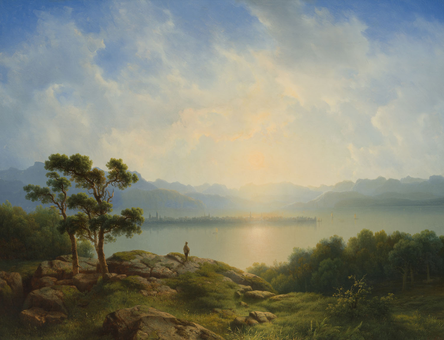 Kleef, Museum Barend Cornelis Koekkoek-Haus, Cornelis Lieste (1817 – 1861): Schilder van het licht/ Maler des Lichts, 21 februari – 19 juni 2016, cat.no. 21  als ‘Zicht op Reichenau bij zonsondergang’